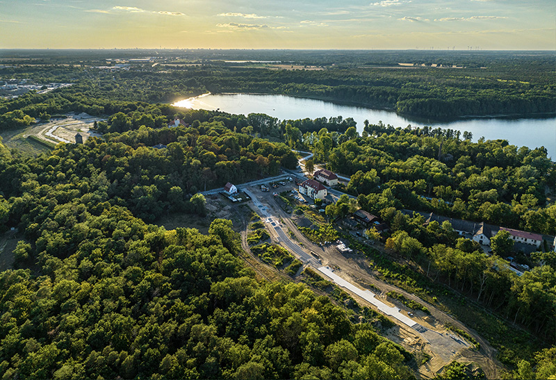 Bei dem Projekt am Stienitzsee handelt es sich um ein derzeit entstehendes Neubaugebiet, in dem es zukünftig Reihenhäuser, Doppelhäuser und Einfamilienhäuser geben wird. Umgeben von Wald und Wiesen entspringt das zukünftige Wohngebiet, das nur einen „Katzensprung“ vom gegenüberliegenden Stienitzsee entfernt ist, der Idee Natur und Kultur direkt vor der eigenen Haustür in Harmonie zu verbinden. In der entstehenden hochwertigen Straßen- und Wegeführung mit Granitborden und Sichtachsen auf den See, wird dieser Anspruch schon in den kleinen Details deutlich.